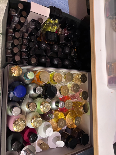 У меня сейчас около 10 ароматов, большая часть полноразмеры, ещё несколько тревел версий, тк к ним сразу был куплен дорожный флакон в бутике. Все, кроме 1, были куплены в поездках за рубежом, в-основном напрямую из Франции. Поэтому у меня естественный ограничитель при покупке, обычно и так в чемодан ничего не влазит и я на грани перевеса.