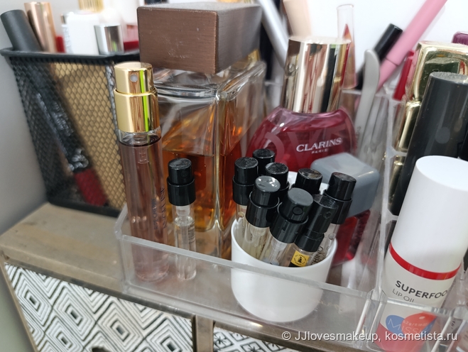 Так же организовано все так, что удобно просматривать. Флаконы витринками, пробники в органайзере по категориям.