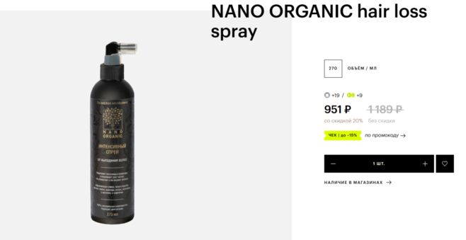От стрессового выпадения меня спас спрей от Нано органик и гидролаты. Я против аптечных средств, потому что у моих знакомых и близких аптечные средства давали эффект отмены.