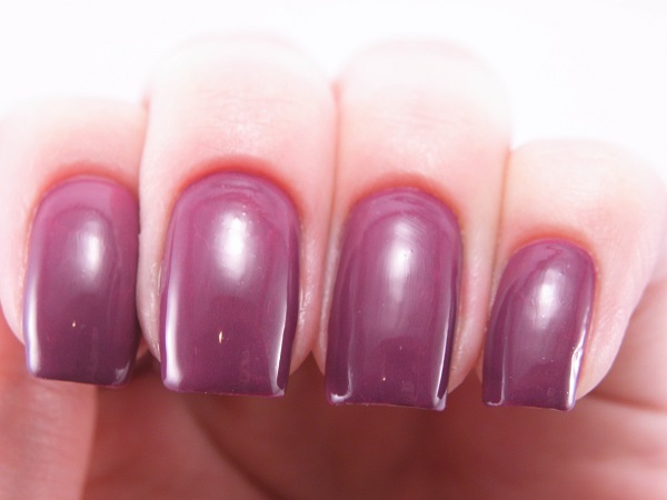 Этот лак в теплом состоянии имеет яркий малиновый ягодный цвет. В холодном состоянии оттенок меняется на сливовый фиолетовый. Самый яркий из опробованных мною термолаков.