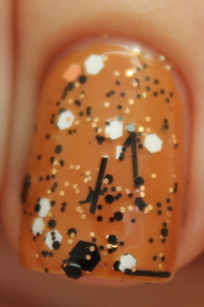 Мне очень нравится «сэндвич» с Boo-giedown. В данном случае я наносила 2 слоя белого лака текстуры желе (China Glaze Moonligth), слой Boo-giedownи сверху еще слой Moonligth