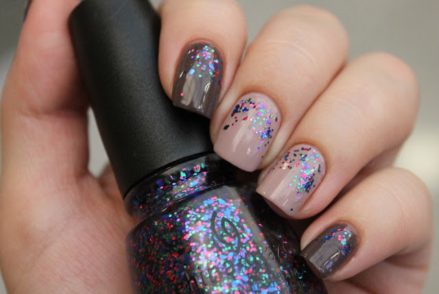 China Glaze #81493 Fang-tastic идеален для создания глиттерных растяжек. Его база не слишком жидкая и не слишком густая, глиттера на кисть набирается оптимальное количество.