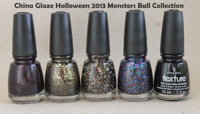 Итак, China Glaze Halloween 2013 Monsters Ball Collection включает в себя 5 оттенков: