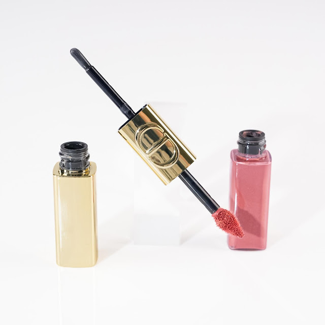Жидкая, стойкая двухсторонняя помада: с одной стороны — высокопигментированная жидкая помада с матовым финишем, при легком губ преображается сверкающим глиттером; с другой стороны — прозрачный универсальный глянцевый топ, который можно носить как самостоятельно, так и поверх помады для дополнительного сияния.