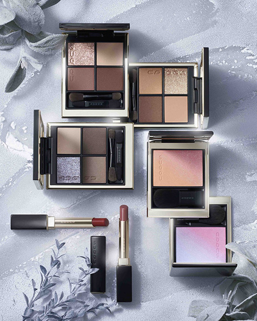 SUQQU выпустли новую зимнюю коллекцию к рождественским праздникам 2025 года — Hoarfrost Art. Коллекция SUQQU вдохновлена красотой нежного инея, покрывающего позднюю осеннюю траву. Цветовая палитра отражает приглушенные тона сезона, сочетая матовые текстуры с перламутровым блеском. Коллекция включает в себя три палетки теней для век, два оттенка румян и три помады.