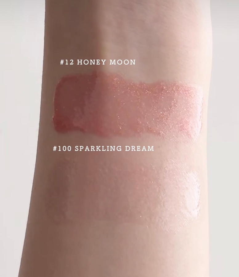 - 100 Sparkling Dream - прозрачный нюдово-бежевый с мельчайшим мультихромным перламутром, который меняет оттенок в зависимости от угла падения света, придавая губам изысканное сияние.
