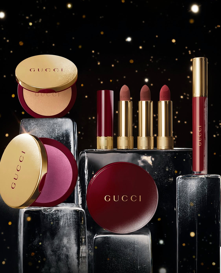 Gucci Beauty выпустили небольшую рождественскую коллекцию Makeup Collection Christmas Holiday 2025, на которую вдохновило звёздное небо. Упаковки этой лимитированной коллекции выполнены в ярко-красных оттенках с золотым сиянием звёзд. В коллекцию вошли: