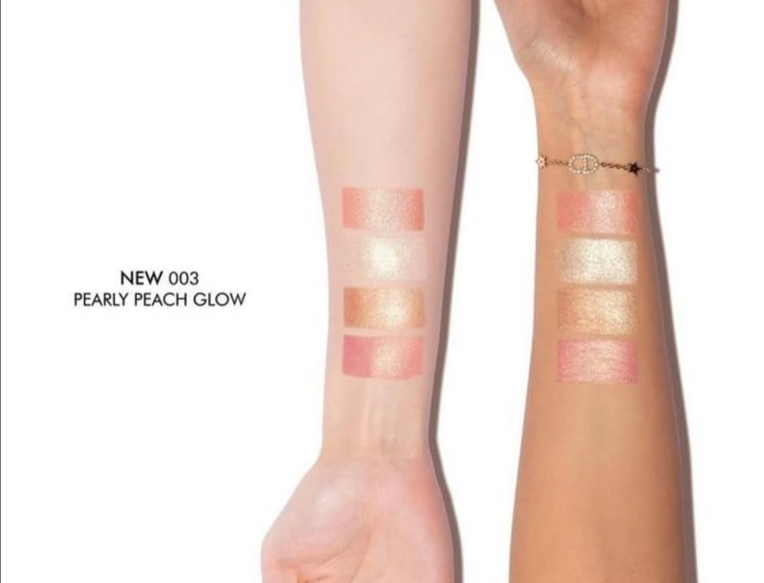 - 003 Pearly Peach Glow — палетка с тёплыми, сияющими оттенками, прекрасно дополняет Lip Maximizer 111