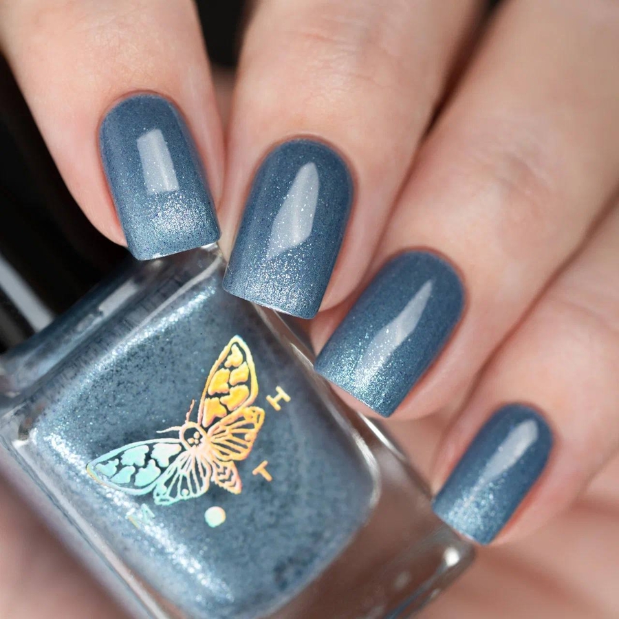 Пыльная серо-голубая база с серебристо-голубым магнитным шиммером.
