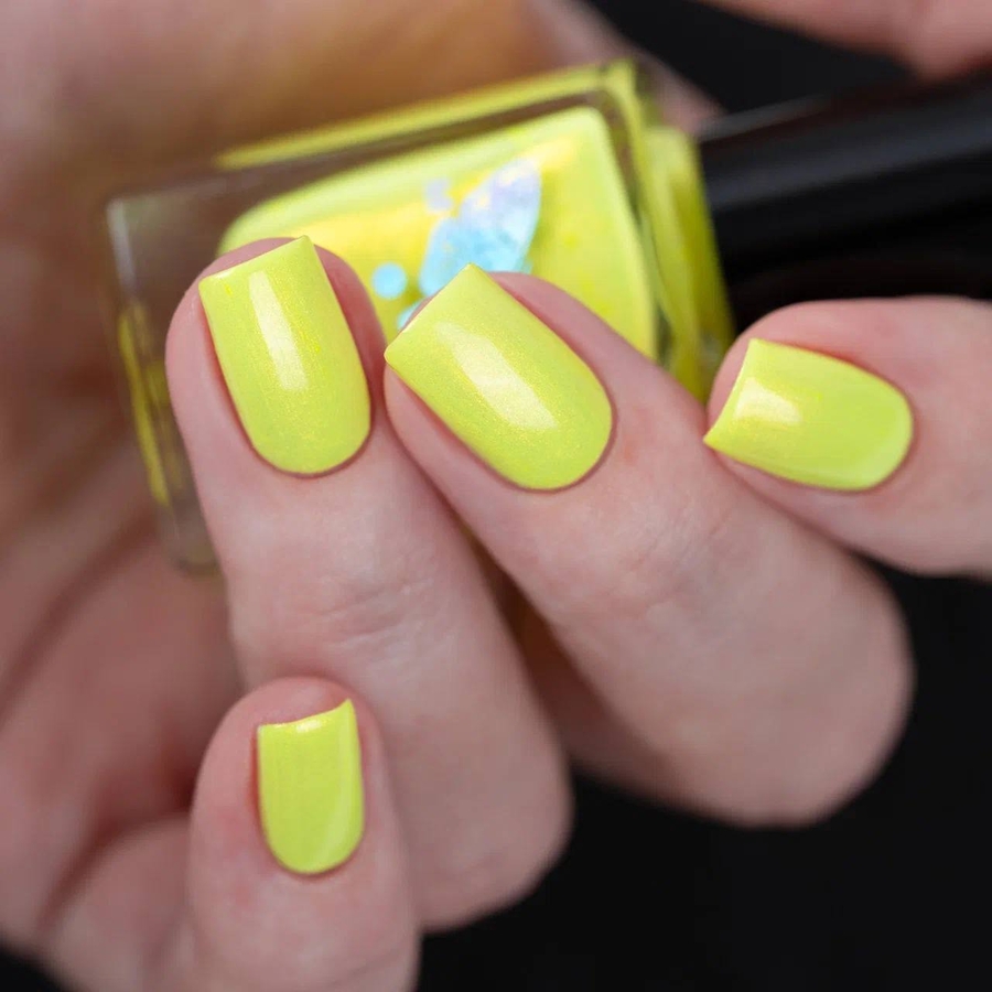 Голубое желе с обилием искристого золотисто-зелено-бирюзового шиммера.