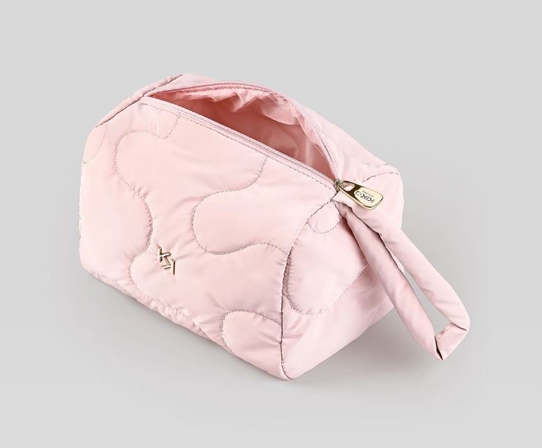 Стильная, вместительная косметичка с культовым логотипом KIKO MILANO на передней части, мягкая как подушка, для аккуратного хранения косметических средств. Идеальный аксессуар, который добавит изюминку любому образу. Водоотталкивающий материал с волнообразным стеганым узором нежно-розового цвет. Прямоугольная форма со скругленными углами, классическая и практичная, с одним основным отделением и застежкой-молнией. Ремешок на запястье в тон для удобной переноски и надежного захвата.