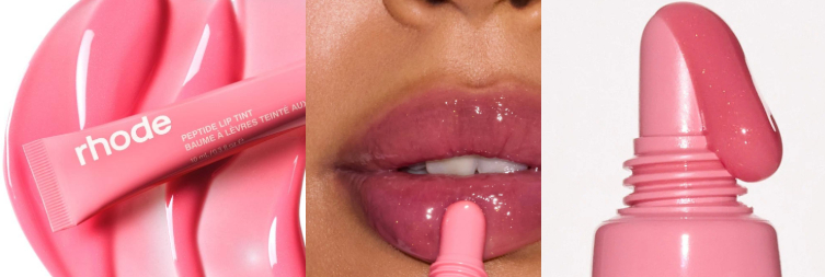 Rhode peptide lip tint Sweet Pea: весенний тёплый розовый с золотистым шиммером