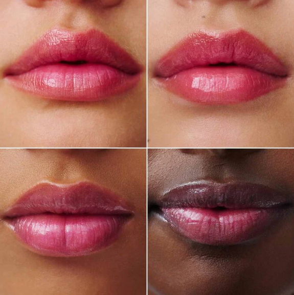 Губам этот бальзам придаёт лёгкий розоватый оттенок, но лучше всего такой бальзам смотрится на тёмных губах благодаря тому, что оттенок немного холодеет.