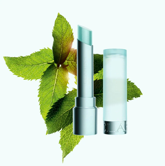 Мятный стик меняет цвет после прикосновения к губам на нежный розовый оттенок, который подстраивается под естественный оттенок губ, напоминая помады с проявляющимся эффектом.