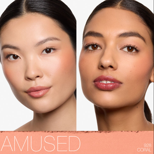Первый оттенок — Amused — тёплый, абрикосовый, близкий к коралловому. Очень нежный, красивый и подчёркивающий красоту карих глаз, особенно с выраженным чайным или медовым подтоном. Он останется в постоянной коллекции бренда под названием 928 Coral, но уже в другом футляре.