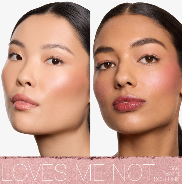 Второй оттенок — Loves Me Not — холодный, припылённо-серо-сливовый. Он явно рассчитан на холодную кожу, хотя может контрастно смотреться на девушках с карими глазами и выразительным загаром. Этот цвет тоже останется в постоянной коллекции под номером 906 Satin Soft Pink.