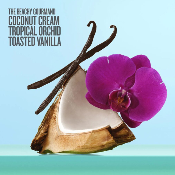 Верхние ноты: нектар гуавы, кокосовая вода.