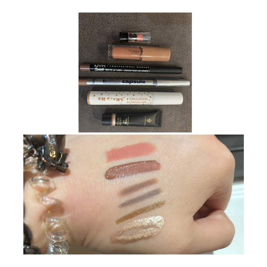 - помаду из набора Cosmiso, оттенок 01 (почти все их неудобно наносить по контуру и выглядят на губах не так, как в тюбиках, к сожалению. Но за такую цену и за вариативность оттенков в наборе простительно)