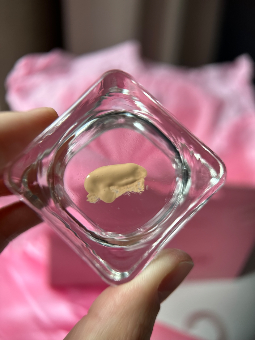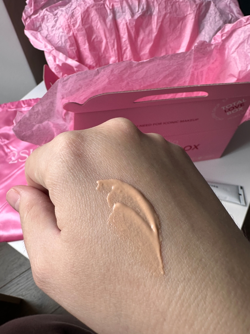 Хоть сама текстура и финиш тонального мне понравились, но цвет, конечно, вообще не мой. Я старалась как могла его распределить тонким слоем.