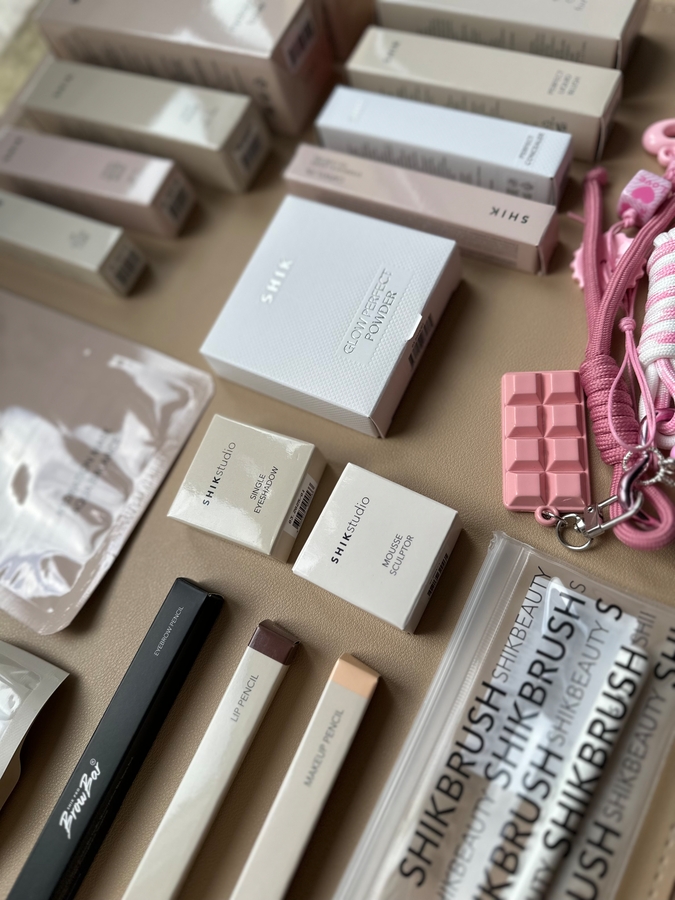 Внутри бокса 18 продуктов бренда SHIKstudio. В подарок шел обвес. Упаковано все очень красиво, мило, в розовой картонной коробочке.