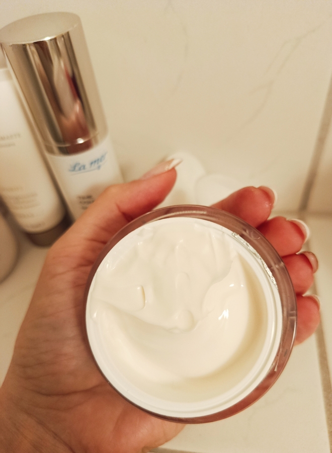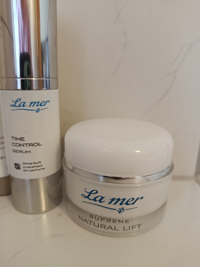 Начала я свое знакомство с данной маркой с Serum La mer Time Control. Сыворотка имеет лёгкую текстуру и очень экономно расходуется, одного нажатия помпы хватает на все лицо и шею. Работает сыворотка с кожей лица прекрасно, и после получения первых положительных впечатлений я побежала уже докупать крем.