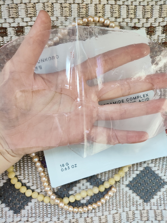 Nunkoro не поскупились на пропитку — ткань буквально плавает в сыворотке. После того как достаю маску, в пакетике остается столько продукта, что хватает на: