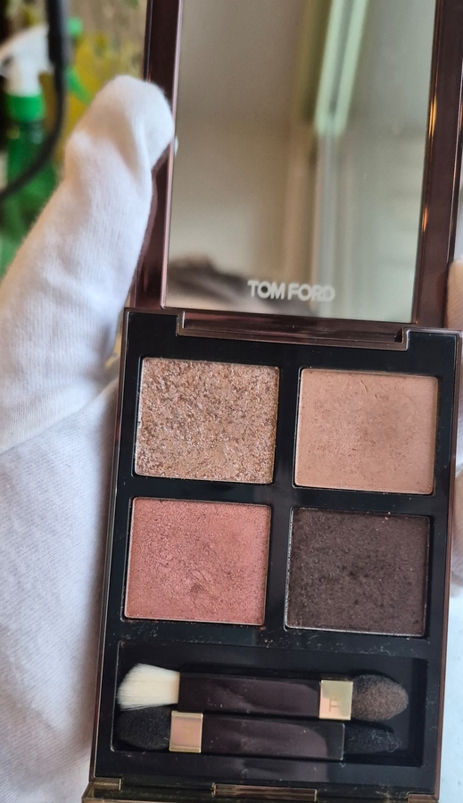 Комплектация- коробочка, которую трепетно храню, пыльник (что для меня тоже роскошь, потому что из последних приобретений даже пудра gucci была без пыльника) и сама палетка в тяжелом шоколадном магнитном футляре.