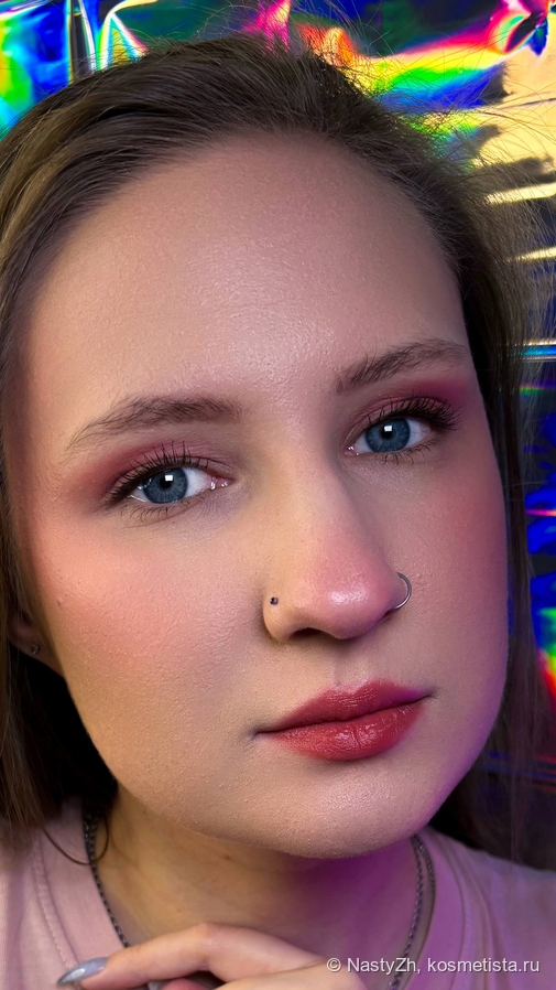 - И отдельно еще фото макияжа на естественном освещении, где тинт использовала в качестве румян и решения для губ.