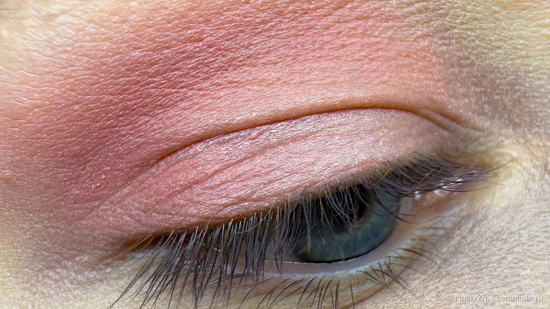 ● А здесь я уже решила дать себе вольную и использовать по прямому назначению: на глаза, щеки и губы. Глаза предварительно подготовила, нанеся самую обычную базу для теней, закрепила прозрачной пудрой (это не минус тинту, т.к. любые кремовые текстуры на глазах лучше закреплять сухими для стойкости).