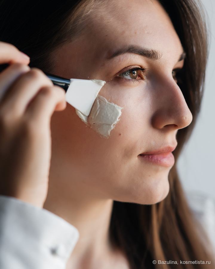 Заметили по составу, что эта маска с кислотами, при этом глиняная и с деликатными полирующими мелкими частицами. На мой взгляд, так удачно поместили в одну баночку такие компоненты и тем самым подарили нам одновременно эффект химической и механической эксфолиации, то есть получилась маска пилинг-скраб (3 в 1). Здорово, освободится место на полочке в ванной.