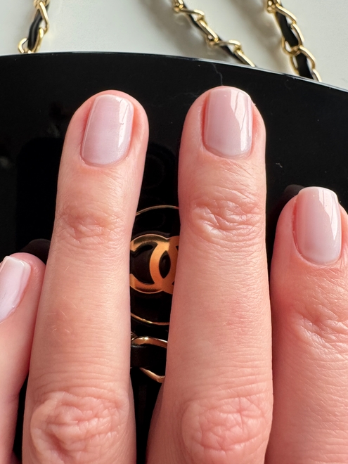 Результат: деликатное внутреннее свечение, эффект фарфоровых ногтей