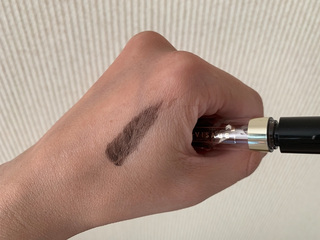 Использую цвет #403, он сам по себе очень интересен, это не матовый серый, но серая база с совсем легким золотистым шиммером, дает рассеивающий эффект и бровь не выглядит вульгарно или жутковато. Вполне естественный эффект. Нет рыжего подтона, стойкость нормальная для карандаша, если руками по лицу не возить, конечно. Расход не большой, хватает надолго. Удобная щеточка на крышечке, чтобы расчесать бровь до или после окрашивания. Цена тоже приятная, не по цене золотого слитка. Оптимальный вариант для светловолосых девушек.