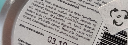 water, panthenol, вutyrospermium parkii (shea) вutter, prunus amygdalus dulcis (sweet almond) oil, hippophae rhamnoides oil, glyceryl stearate se, cetearyl alcohol, glicerin, melaleuca alternifolia (tea tree) leaf essential oil, abies alba essential oil, xantan gum, lactic acid, chlorhexidine digluconate, calendula officinalis extract, matricaria chamomilla extract, benzil alcohol, potassium sorbate, tocopheryl acetate.