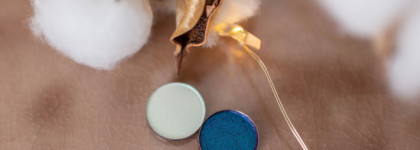 150 - профиль «Восхваление»: практически самый темный хроматический оттенок всей палитры. Глубокий сине-бирюзовый, переходящий в фиолетовый. Совсем против света и на большой площади может давать розовый и даже желтый бочок. Плотный металлический тон, его получится максимально легко и ярко использовать влажным нанесением или пальцем. Не рекомендуется тушевать, не рекомендуется наносить на базы, содержащие диоксид титана, т.к. максимальную насыщенность он даст на прозрачных или темных подложках, белое всегда разбеливает темные тона.