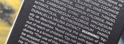 aqua, cocamidopropyl betaine, cocamide dea, sodium lauryl sulfate, dimethicone, zinc pyrithione, sodium chloride, guar byssus thread, hydroxypropyltrimonium chloride, parfum, carbomer, citric acid, magnesium nitrate, magnesium chloride, melaleuca alternifolia butyrospermum parkii, dunaliella salina extract.