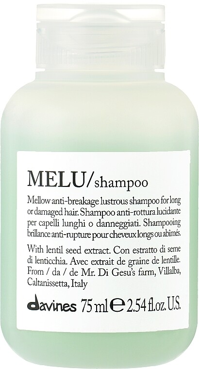 Шампунь для предотвращения ломкости Davines MELU Shampoo бережно очищает повреждённые или длинные волосы и придаёт локонам блеск и упругость. Содержит экстракт семян чечевицы из Виллальбы, выращенной в рамках программы Slow Food Presidium. Формула шампуня обогащена серином и глютаминовой кислотой обладает питающими и восстанавливающими свойствами. Чечевица из коммуны Виллальба на Сицилии характеризуется высоким содержанием железа и протеина, и низким содержанием фосфора и калия.