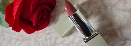 Помада имеет нежную кремовую текстуру и легкий сладкий аромат. Она дает ровное покрытие с насыщенным цветом и натуральный финиш с легким влажным сиянием.