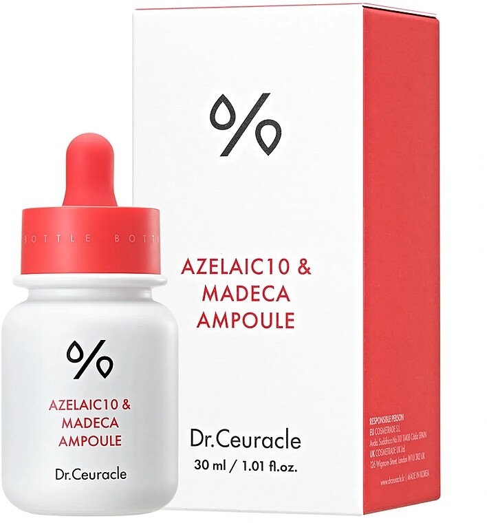 water, azelaic acid, propylene glycol, sodium hydroxide, pentylene glycol, hydroxyethylcellulose, panthenol, chondrus crispus extract, chlorella vulgaris extract, glucose, saccharum officinarum (sugarcane) extract, glycerin, 1,2-hexanediol, butylene glycol, fructooligosaccharides, fructose, ethylhexylglycerin, dextrin, theobroma cacao (cocoa) extract, madecassoside, tocopherol, arginine