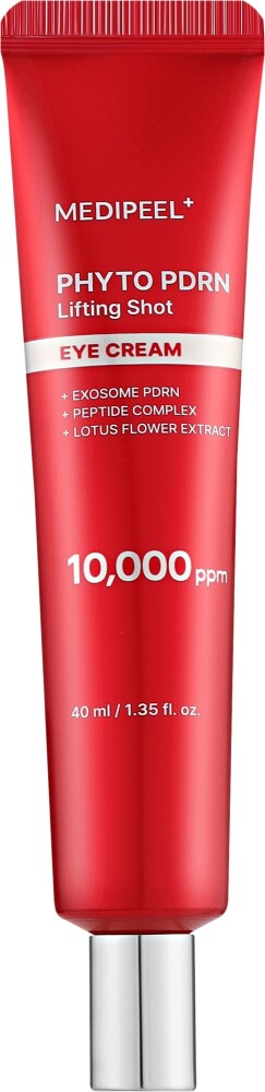 Антивозрастной крем для век с фито-экзосомами и PDRN Medi-Peel Phyto Exosome PDRN Lifting Shot Eye Cream замедляет процесс старения, уменьшает признаки возрастных изменений в области вокруг глаз, делает взгляд свежим и отдохнувшим. Разглаживает кожу, повышает упругость и эластичность, сокращает глубину морщин. Подтягивает, увлажняет и питает, запускает регенерацию. Препятствует образованию тёмных кругов и «гусиных лапок». Содержит 13 пептидов, ПДРН, стволовые клетки яблока, 8 видов гиалуроновой кислоты, витамин C, витамины группы B и растительные масла.