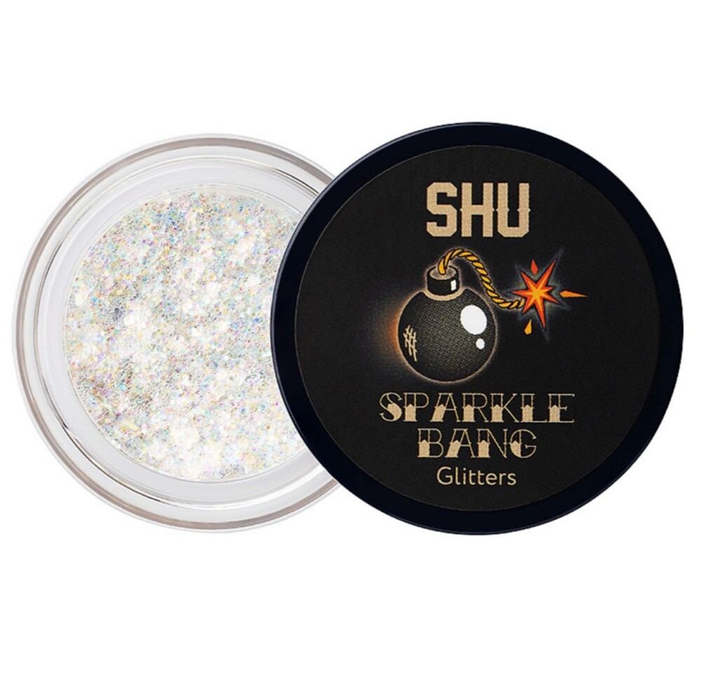Глиттер для волос, лица и тела Shu Sparkle Bang Glitters на гелевой основе станет главным элементом твоего креативного макияжа. Продукт имеет прозрачную гелевую основу, благодаря которой сияющие частицы равномерно распределяются и быстро фиксируются без дополнительной подготовки кожи. Глиттер не осыпается и долго держится. Густая формула гелевой основы позволяет избежать механического повреждения кожи. Глиттер легко смывается обычной водой.