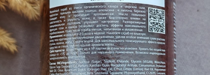 sucrose (sugar), sodium chloride, glycerin, water/aqua, glycine soja (soybean) oil, parfum, xanthan gum, tocopheryl acetate, cinnamomum zeylanicum bark oil, citrus aurantium dulcis (orange) peel oil, citrus limon (lemon) peel oil, pogostemon cablin (patchouli) oil, tocopherol, beta-sitosterol, squalene, phenoxyethanol, ci 20285, limonene, cinnamal