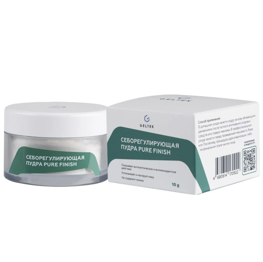 Cеборегулирующая пудра для лица Гельтек Pure Finish с матирующим эффектом для жирной, комбинированной и чувствительной кожи.