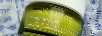 Увлажняющий крем с экстрактом винограда и салициловой кислотой Korres Santorini Grape Poreless Skin Cream восстанавливает баланс кожи и борется с расширенными порами, служит прекрасной базой под макияж.