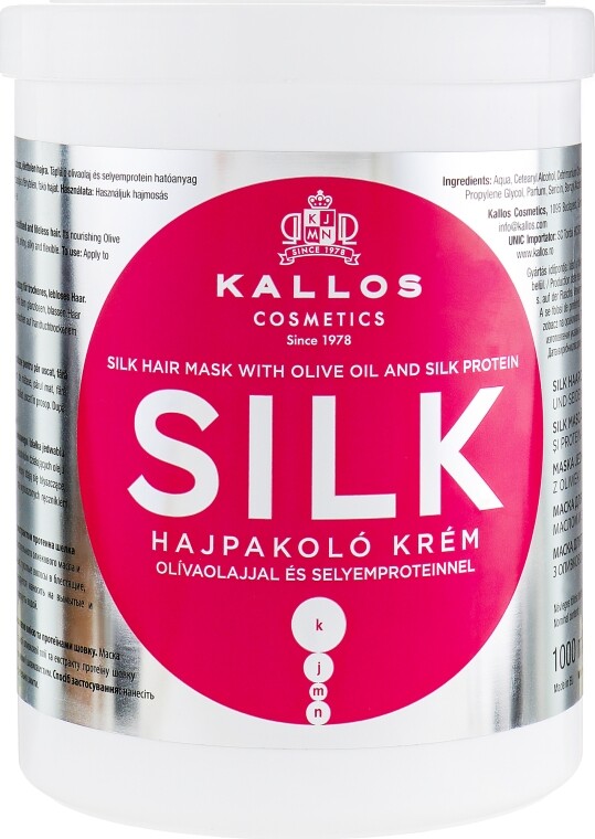 Маска для волос питательная для тусклых волос Kallos Cosmetics Kallos Silk Hair Mask с оливковым маслом и протинами шёлка придаёт волосам блеск, шелковистость и эластичность.