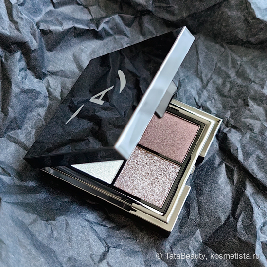Тени — четвёрки упакованы в аккуратный квадратный флакон из пластика «под тёмный хром». Поверхность глянцевая, что не очень практично, потому что остаются отпечатки пальцев и заметны пылинки, но я в плане ухода за косметикой педант и протираю упаковочки после использования и храню всё в коробочках 🙈 Внутри есть качественное зеркало